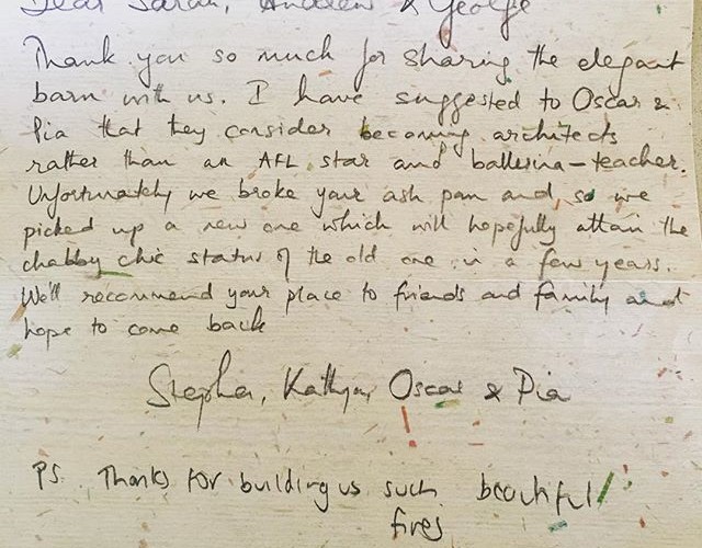 Beautiful Thankyou's from our most recent barn guests. This time George recieved a gift from the markets. We must be getting it right I think.